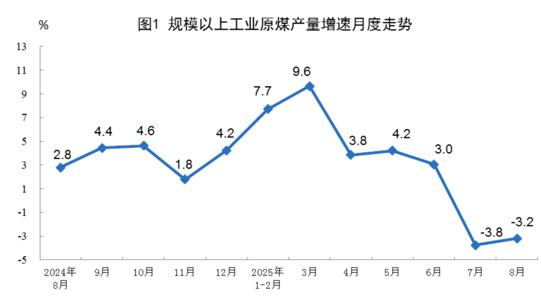 1-8月份,規(guī)上工業(yè)原煤產(chǎn)量31.7億噸,同比增長2.8%。