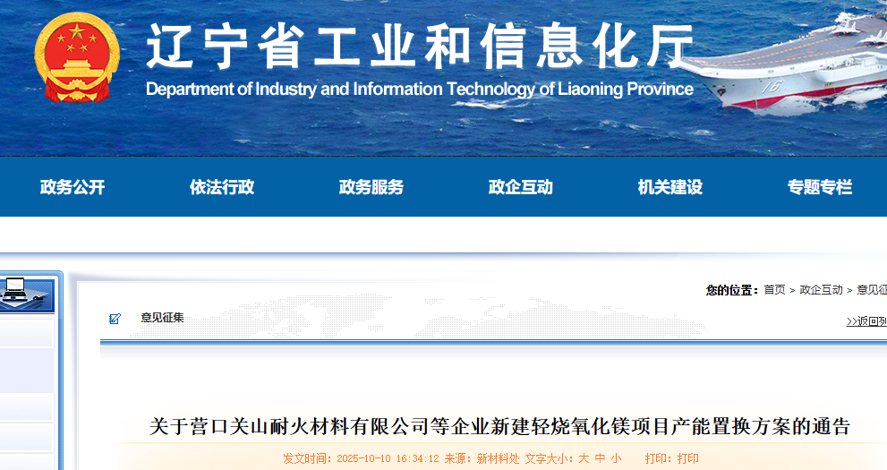 按照《遼寧省人民政府辦公廳關(guān)于推進(jìn)菱鎂行業(yè)高質(zhì)量發(fā)展的實(shí)施意見(jiàn)》(遼政辦發(fā)〔2023〕15號(hào))、《遼寧省菱鎂礦浮選及鎂砂行業(yè)產(chǎn)能置換辦法》(遼工信建材〔2024〕18號(hào))要求,根據(jù)菱鎂行業(yè)專項(xiàng)整治工作進(jìn)展,經(jīng)企業(yè)申請(qǐng)、市級(jí)審核、省級(jí)復(fù)核,我廳于2025年9月19日至10月9日,對(duì)營(yíng)口關(guān)山耐火材料有限公司等企業(yè)新建輕燒氧化鎂項(xiàng)目產(chǎn)能置換方案進(jìn)行了公示,公示期間營(yíng)口關(guān)山耐火材料有限公司等12家企業(yè)無(wú)異議,現(xiàn)予通告。