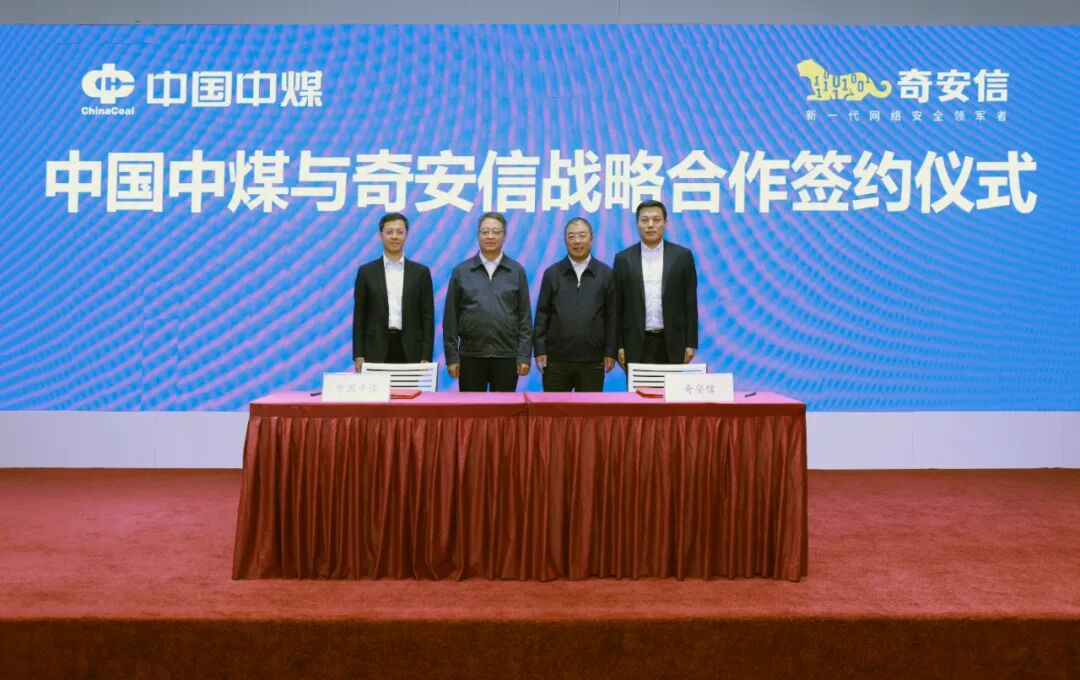 10月9日,中國中煤與奇安信集團(tuán)在京簽署戰(zhàn)略合作協(xié)議。中國中煤黨委書記、董事長王樹東與奇安信集團(tuán)黨委書記、董事長齊向東舉行工作會談并見證簽約。中國中煤黨委常委、副總經(jīng)理倪嘉宇,奇安信集團(tuán)高級副總裁吳登峰分別代表雙方簽署協(xié)議。奇安信集團(tuán)副總裁唐皓參加活動。