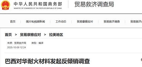 巴西對(duì)華耐火材料發(fā)起反傾銷調(diào)查