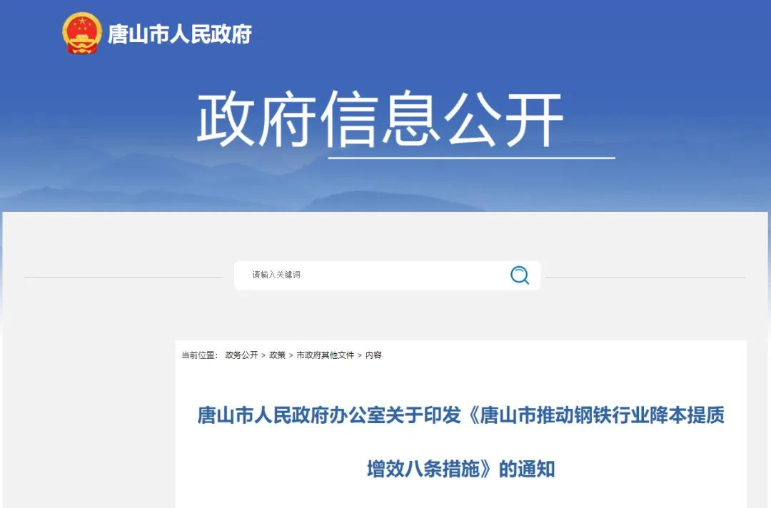 唐山市推動(dòng)鋼鐵行業(yè)降本提質(zhì)增效八條措施