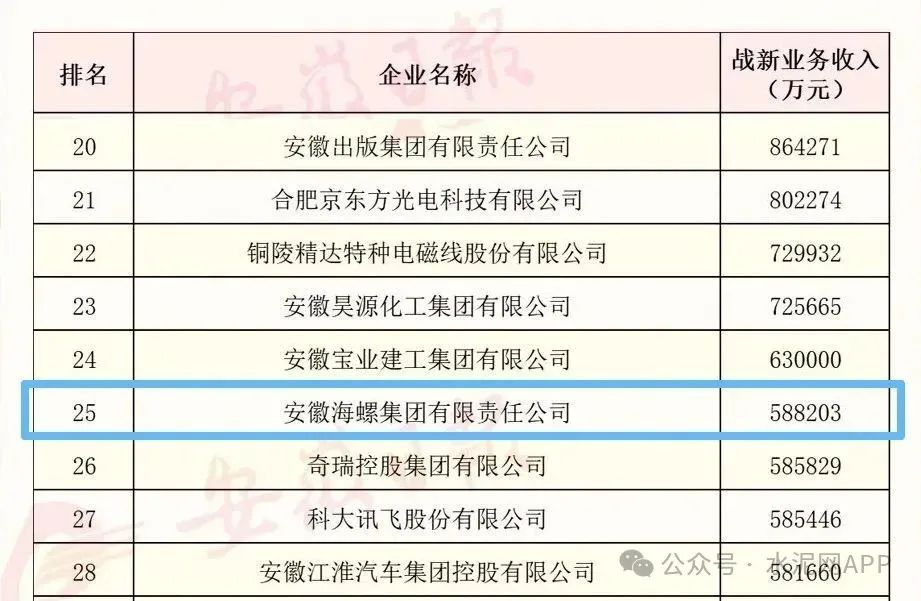 海螺集團名列“安徽百強企業(yè)戰(zhàn)略新興業(yè)務(wù)營收30強榜單”第25位
