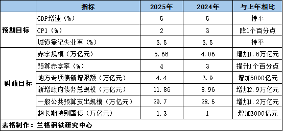 2025年政府工作報告中主要經(jīng)濟(jì)和財政目標(biāo)