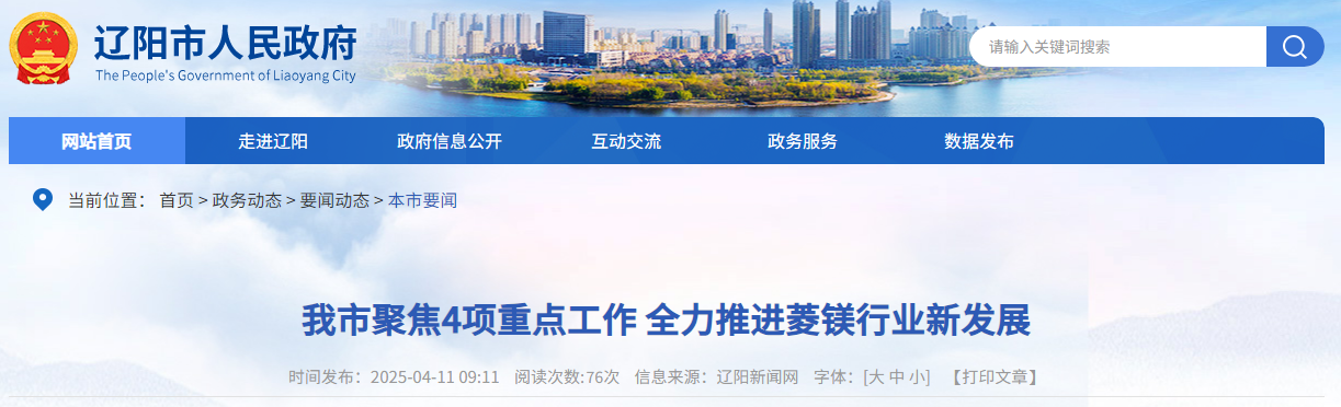 一季度,遼陽市菱鎂行業(yè)高質(zhì)量發(fā)展工作穩(wěn)步推進。在全面總結(jié)工作經(jīng)驗、階段性成果的基礎(chǔ)上,遼陽市聚焦4項重點工作,力求全方位推動菱鎂行業(yè)實現(xiàn)新的突破與提升。